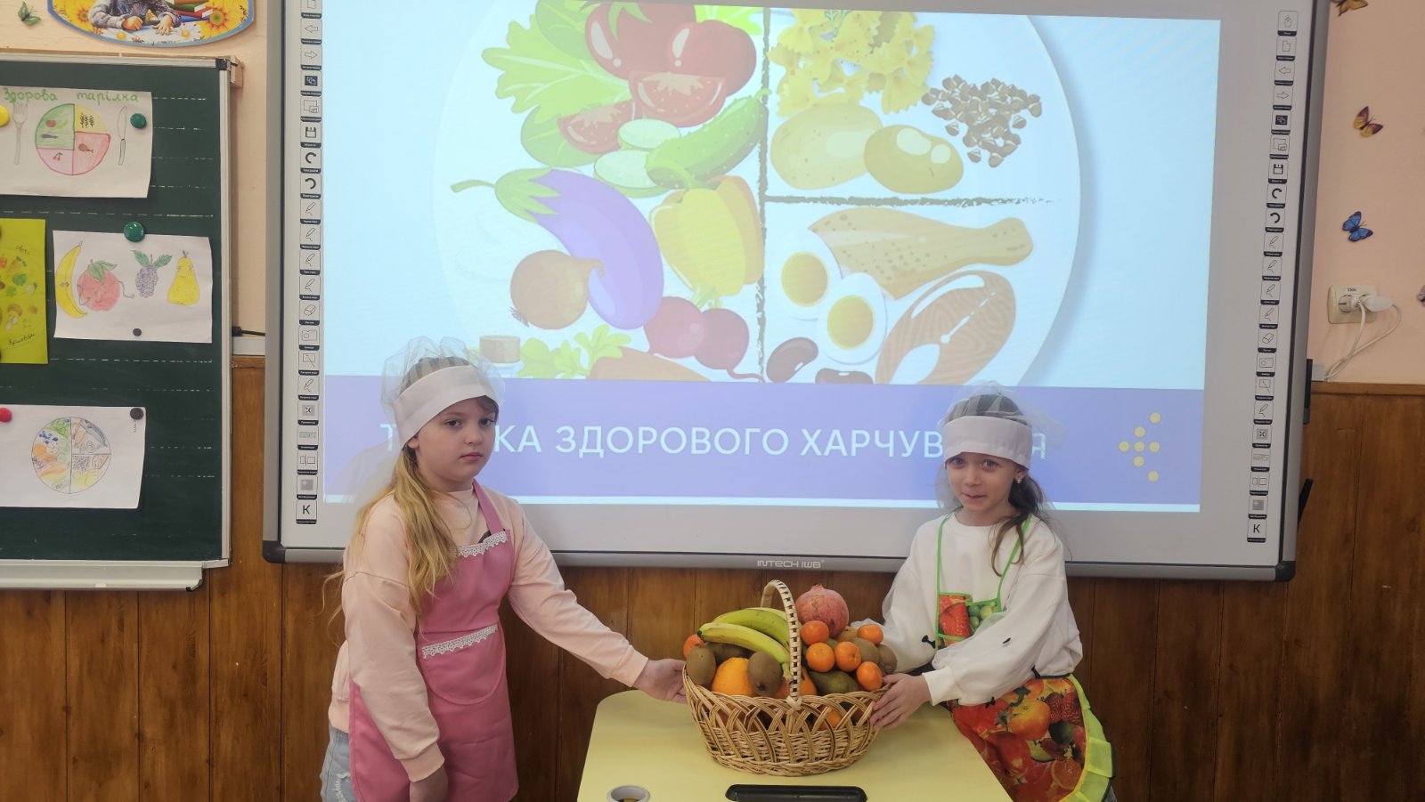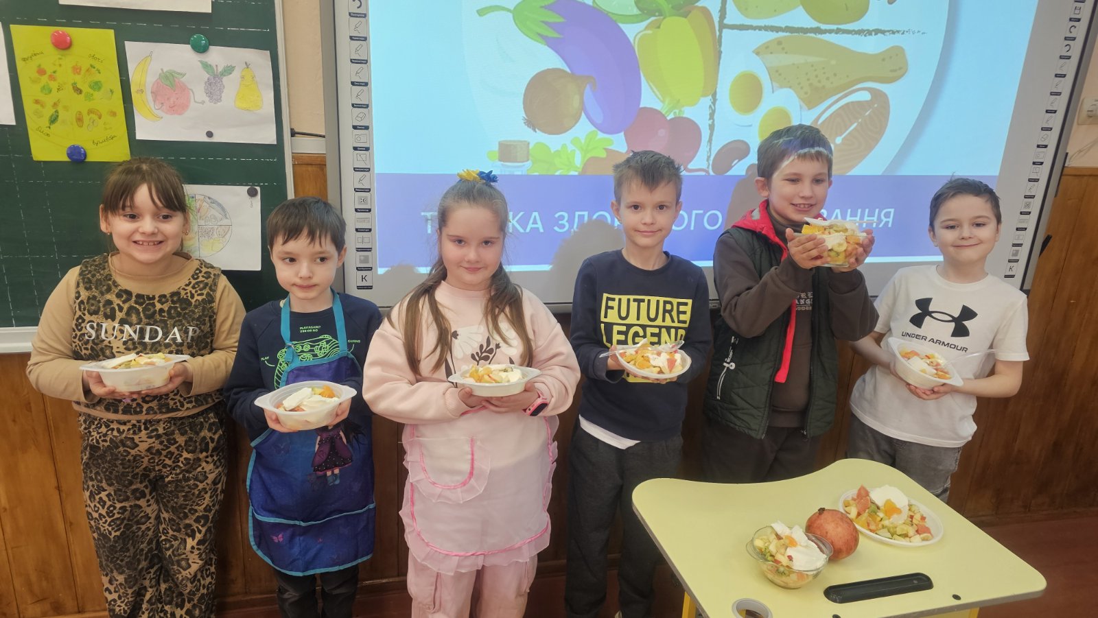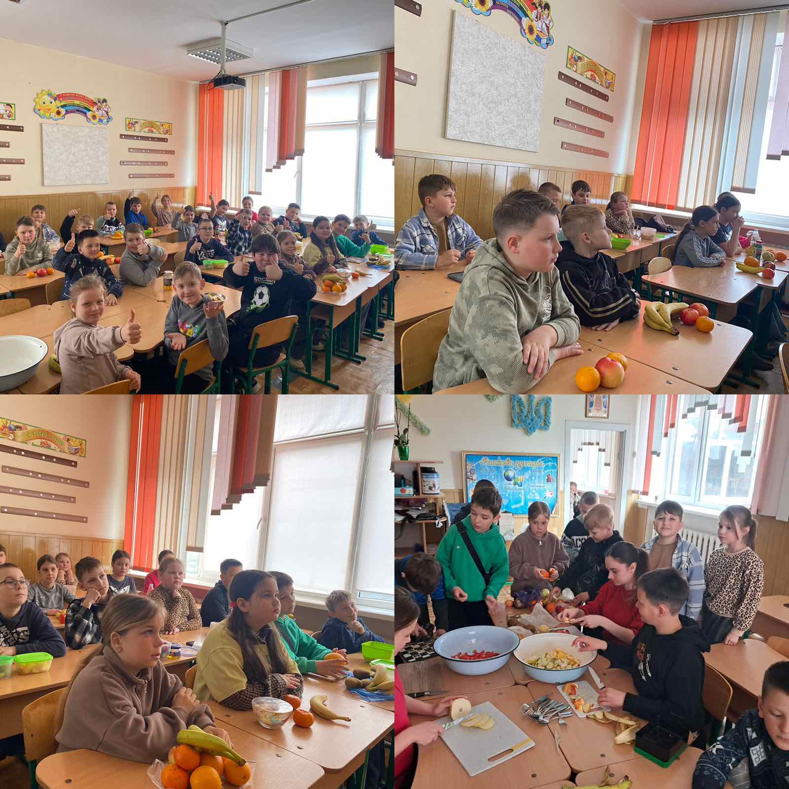Учні 2-Б класу 6 квітня 2026 року провели виховний захід «Тарілка здорового харчування». Під час заходу діти обмінювалися цікавою інформацією про різні фрукти, виконували завдання з англійської мови на тему «Fruits», малювали тематичні малюнки та власноруч виготовляли фруктовий салат. Захід пройшов пізнавально, цікаво та сприяв формуванню навичок здорового харчування.