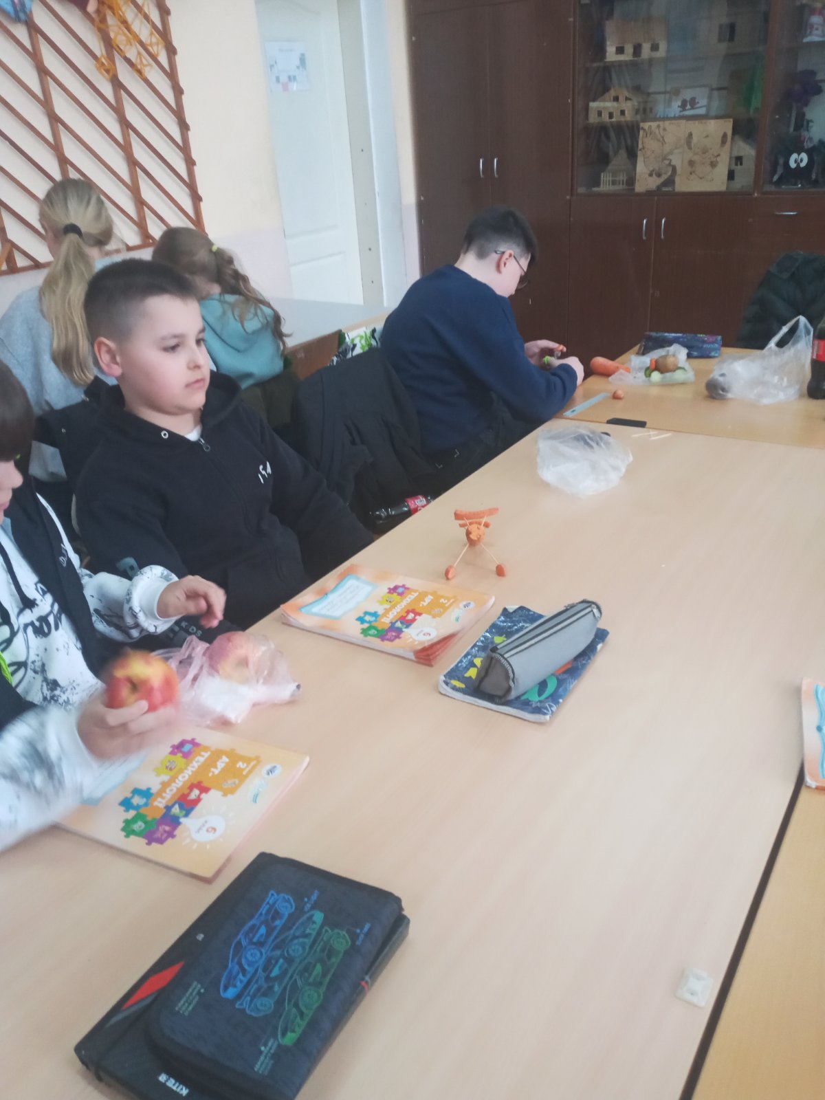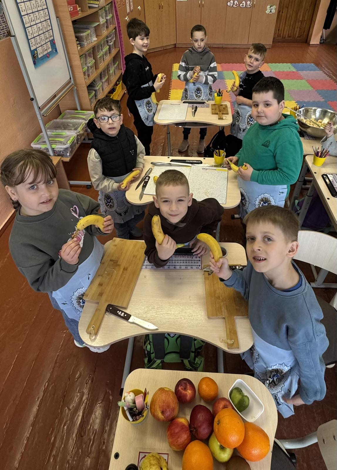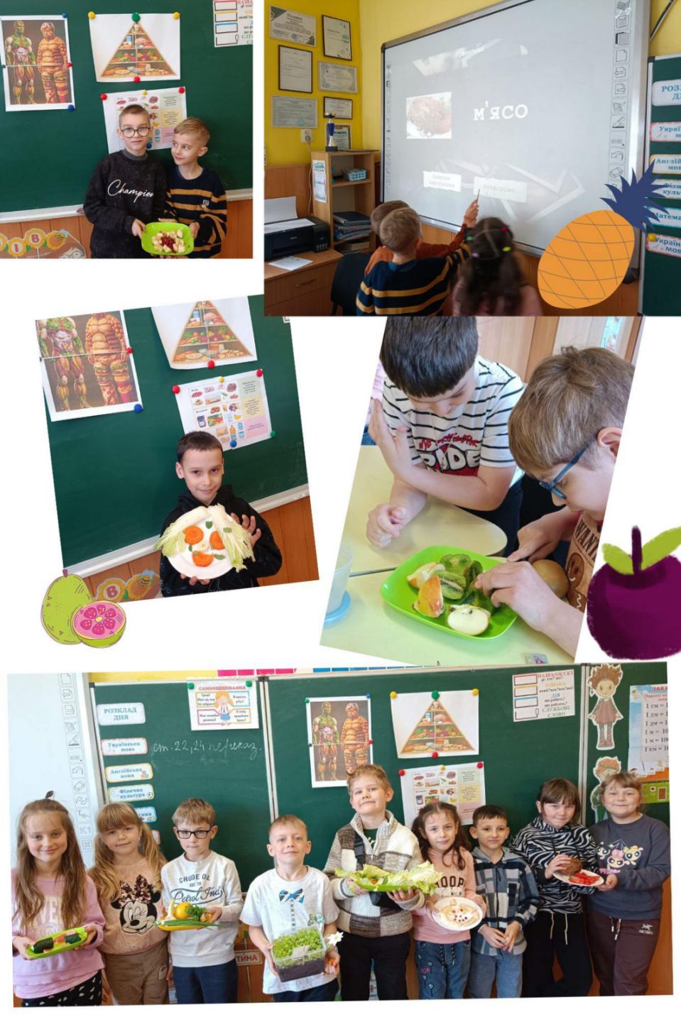 Учні 2-Б класу 6 квітня 2026 року провели виховний захід «Тарілка здорового харчування». Під час заходу діти обмінювалися цікавою інформацією про різні фрукти, виконували завдання з англійської мови на тему «Fruits», малювали тематичні малюнки та власноруч виготовляли фруктовий салат. Захід пройшов пізнавально, цікаво та сприяв формуванню навичок здорового харчування.