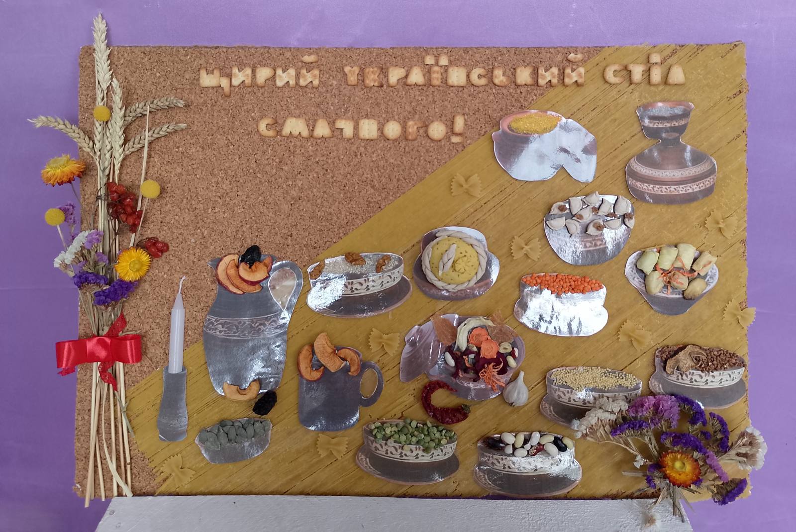 До Дня здоров’я учні 8-х класів створили тематичне пано з харчових продуктів «Цінуй український стіл сьогодні!».