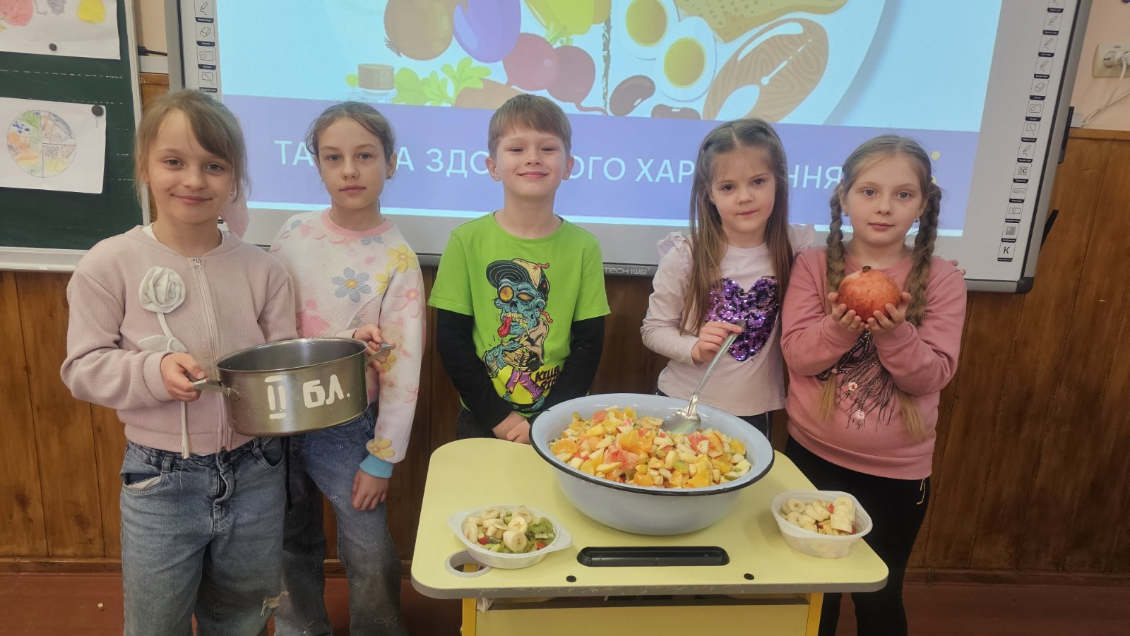 Особливий інтерес викликала практична частина: школярі із задоволенням готували корисні салати. Вони проявили креативність, працювали в команді та із захопленням презентували свої страви.