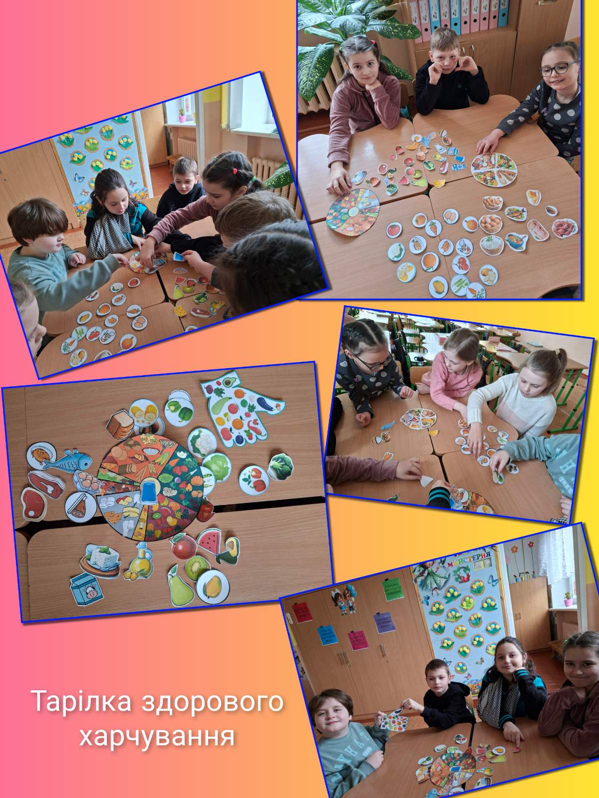 Третьокласники у групах обговорили з яких продуктів складається тарілка здорового харчування. Позмагалися, хто швидше підбере необхідні продукти.