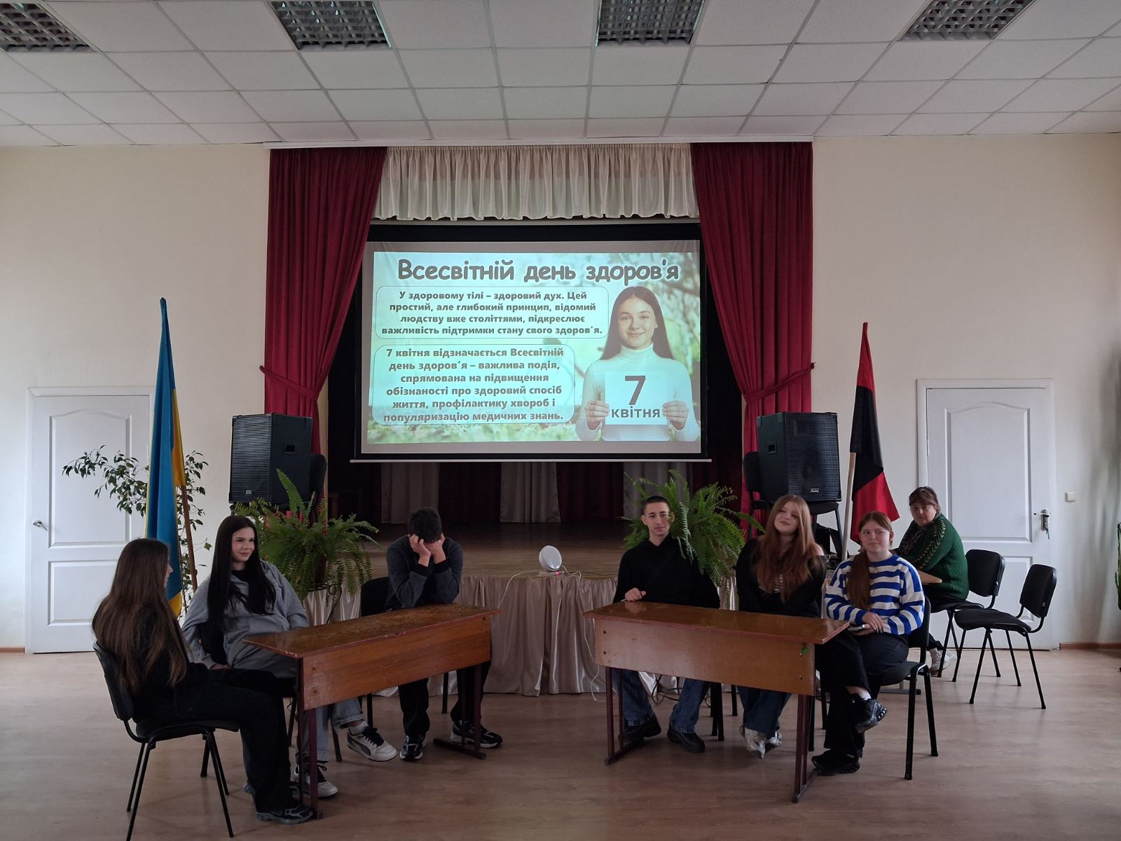 У нашому закладі освіти до Дня здоров’я було проведено цікаве та змістовне толк-шоу для учнів паралелі 9-х класів, організоване педагогом-організатором Тулінцевою Т.П. та класним керівником 9-А класу Гончар Н.М.