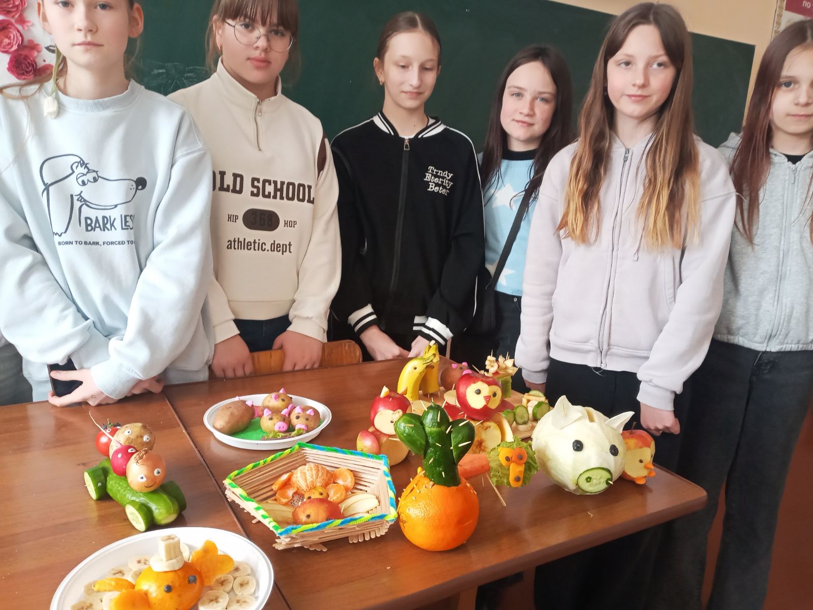 Школярі представили оригінальні композиції з овочів, фруктів та декоративних матеріалів, продемонструвавши свою фантазію, креативність і розуміння важливості корисного харчування.